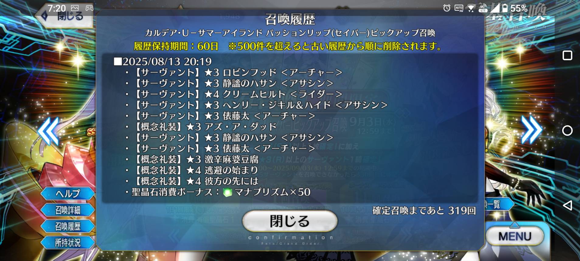 用到4張星5禮裝的cost,布偶麻婆神父會掉甚麼獎勵嗎?