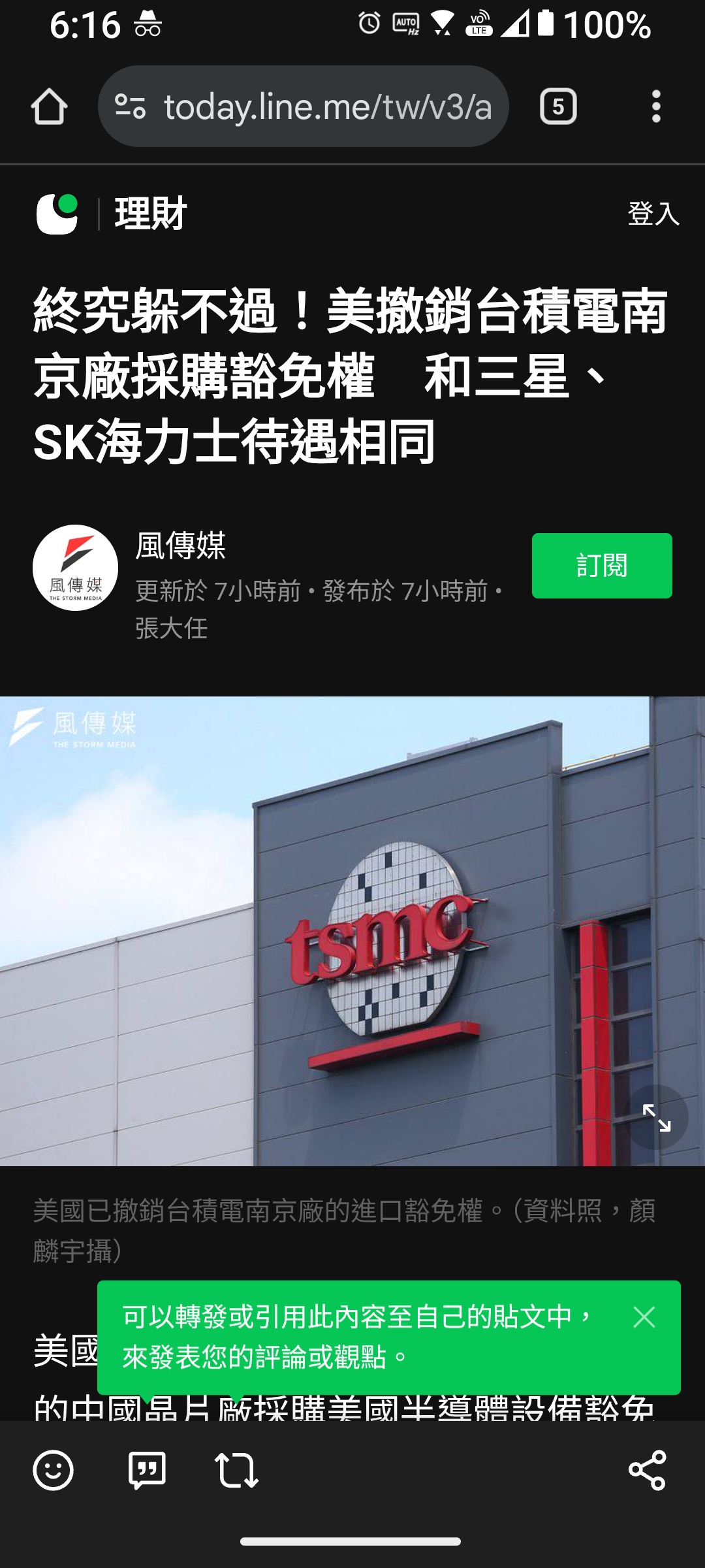 如果你要說限制台積電發展為威脅,要台積電上繳15%獲利是強制力