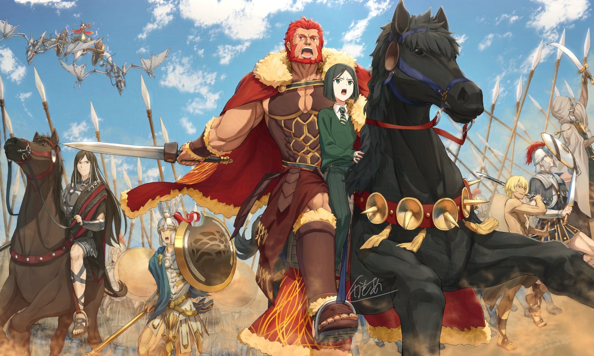 「那個世界的你。再次坐進了那個人的戰車中,和托勒密與其他成員一起組成的王之軍勢,去討伐了希臘惡龍提豐,救下了兩個無辜的少女,而且你的策略一時成了軍勢支撐下去的核心...」
