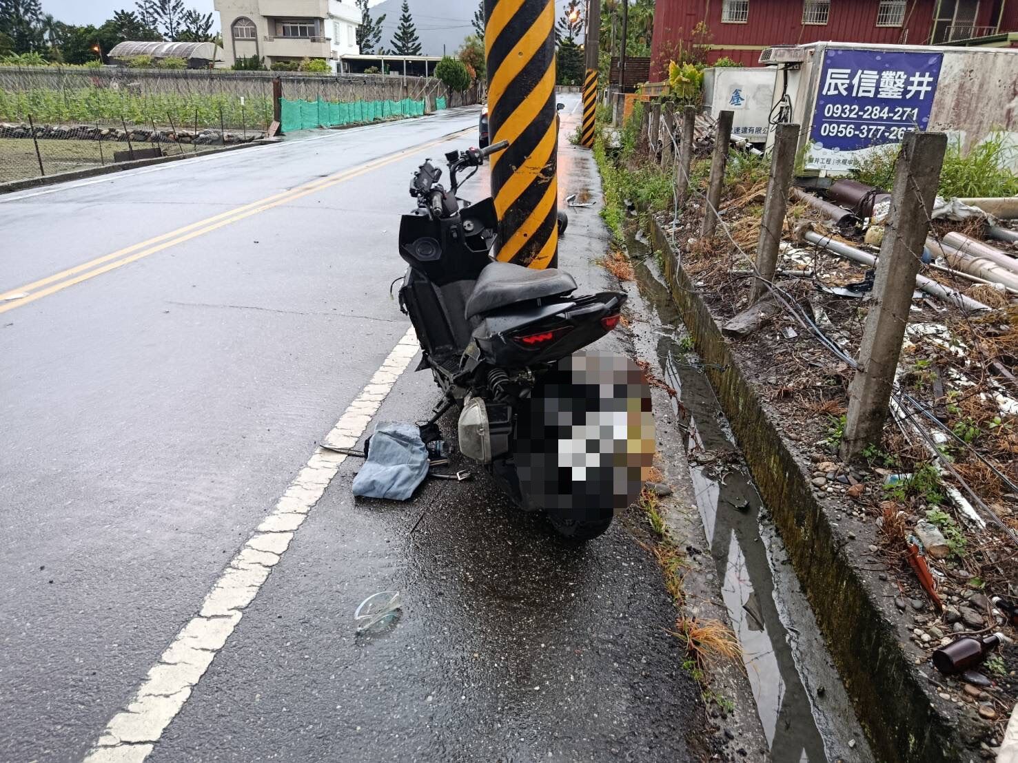 警方初步調查,事發當時黃男騎車載林女沿南海四街東往西方向直行,行經事故地點時,因不明原因自撞,由於撞擊力道猛烈,機車車頭全毀、車殼噴飛,車輛卡在水溝內,黃男、林女則雙雙倒地失去意識。