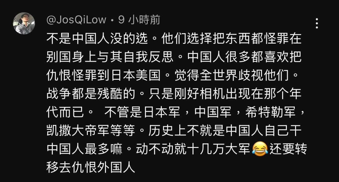 無題 無名 25/09/27(六)12:20:31 ID:zqA8uEOo No.1251379 無題 無名 25/09/27(六)12:40:45 ID:egVHhiQ. No.1251381 無題 無名 25/09/27(六)13:01:49 ID:OvJ8CFqQ No.1251382 無題 無名 25/09/27(六)14:28:54 ID:FCSkYqXM No.1251393 >>1251382小鬼子這種連93閱兵都認定是ai的智商,也就你這種蛙蛙喜歡跪舔它們皮炎還當糖呢