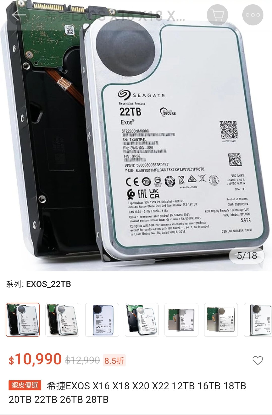或者我要捏者上希捷22TB 一萬左右的硬碟?