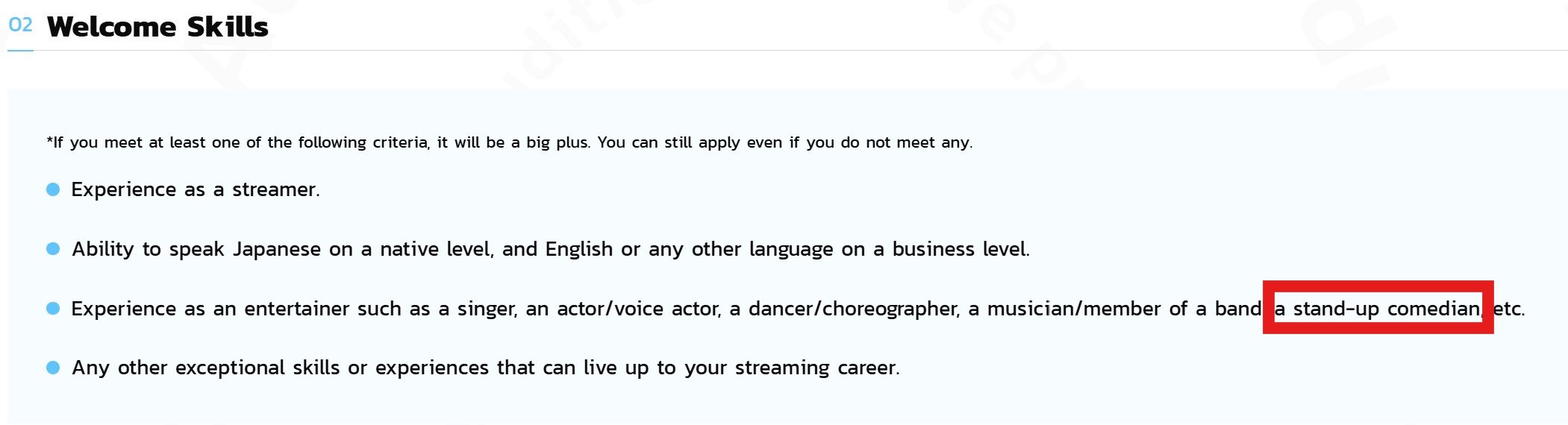然後加分條件之一是喜劇藝人