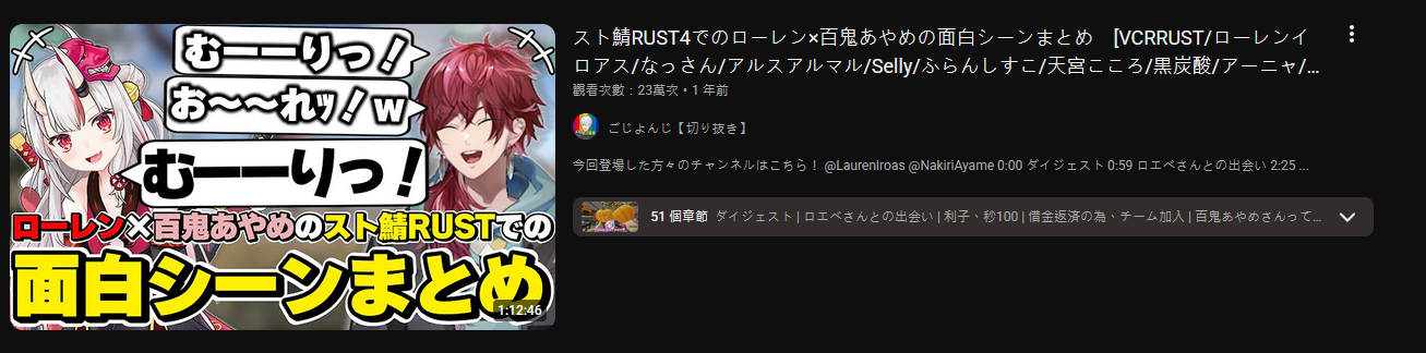 自己去YT找 RUST 百鬼 ローレン 一堆ww