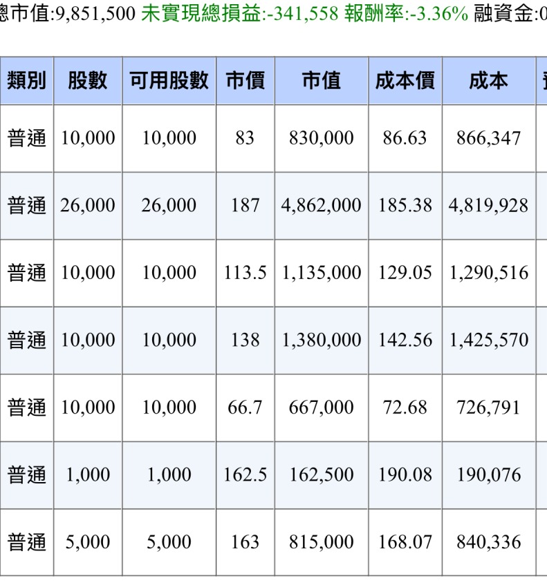 湊齊了除了煎蛋以外的股票 然後通通慘兮兮