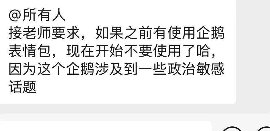 學校教師在班級群組提醒同學們,近期網路上流行的「高雅人士」企鵝MEME因被部分網友二次創作出涉及敏感歷史與政治隱喻的內容,已經帶來爭議,要求學生不要繼續使用相關表情。