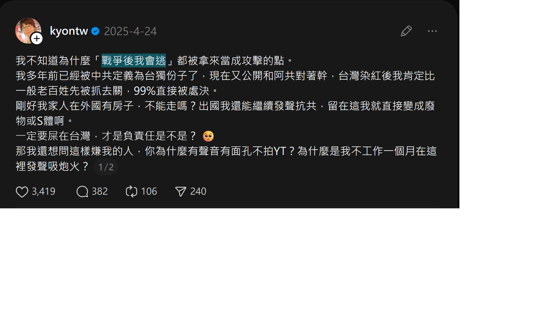 你們平時的智障言論在戒嚴時 一定會讓你們惹上殺機ㄛ~