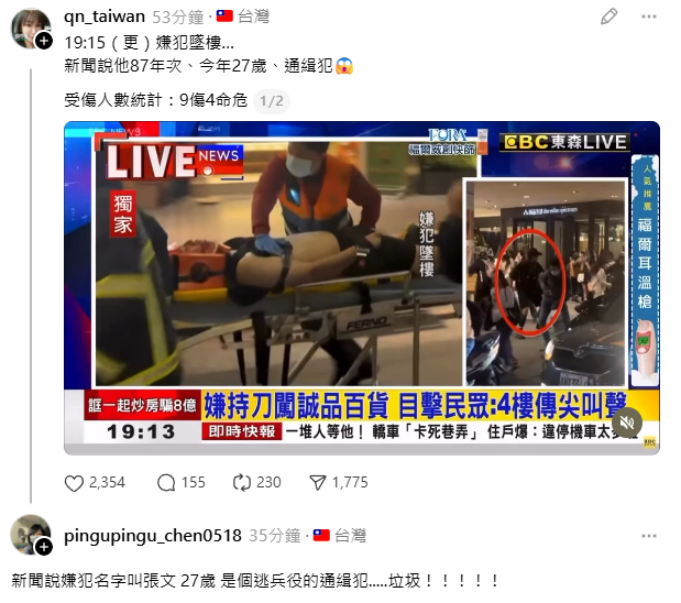 誠品書店 被刀刺中 4人命危搶救中