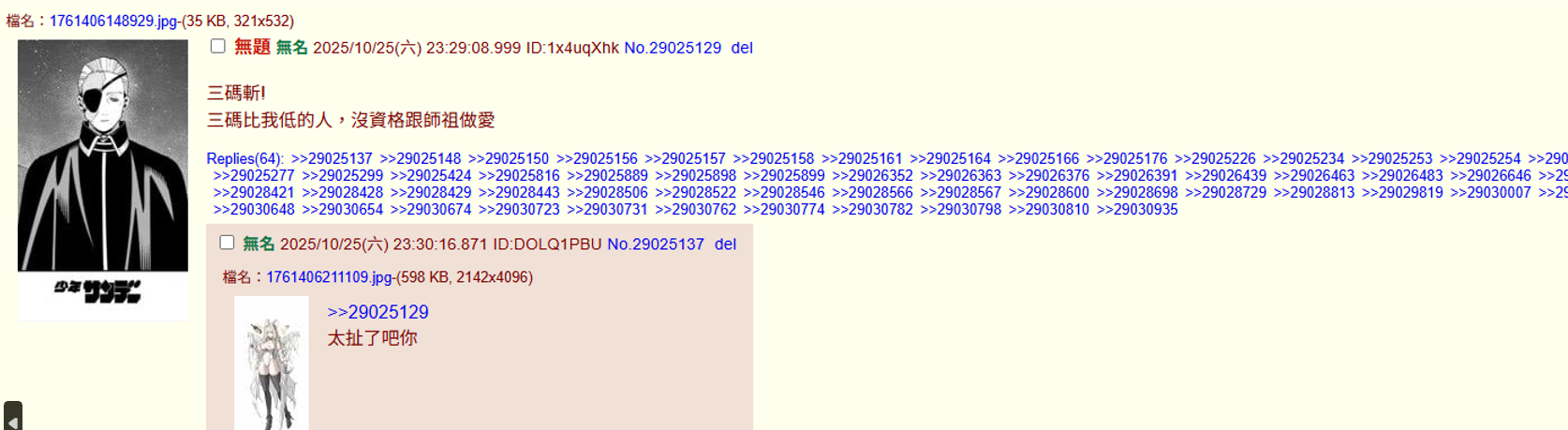 [綜合]無題 無名 ID:gHTgFOnQ 2025/12/21(日) 23:05:23.300 No.29403182 評分:0, 年:0, 月:0, 週:0, 日:0, [+1 / -1] 最後更新:2025-12-22 01:02:52