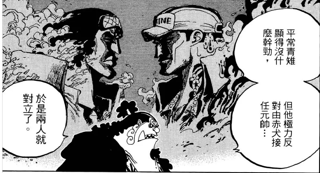 1.青雉,聽到赤犬要接任元帥就馬上跳出來反對,最後搞到要單挑,結果輸了馬上就退出海軍,對赤犬的嫌惡真的肉眼可見了