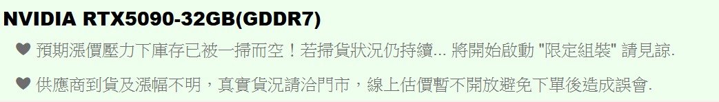 還有近期原價屋、各電商的 RTX 5090 已經被掃空了