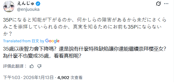 無題 無名 ID:MWt6Emeo 2026/01/13(二) 21:11:04.283 No.29547781