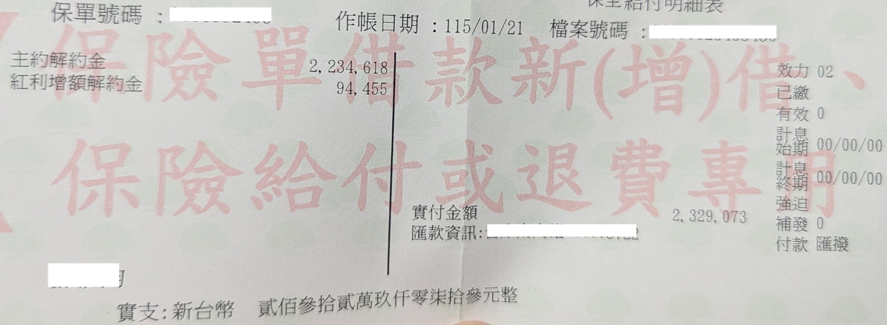 無題 無名 ID:5E15mMs6 2026/01/20(二) 16:03:42.116 No.29589957 把2016年底躉繳的儲蓄險兩百萬解約