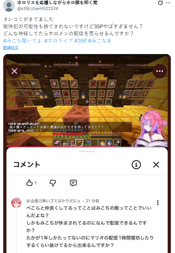 >>29613206いやみこちがアンチからどれだけ深刻な攻撃を受けてたか、前の復帰配信を見てもまだ理解できてないのか?お前が言う「重い単語」でも形容しきれてないほど深刻だったろ。お前が言う「癌患者の家族」が「アンチの攻撃を見た35P」である事をいいかげん理解しろ。アンチの攻撃をネットだからと軽く見すぎ