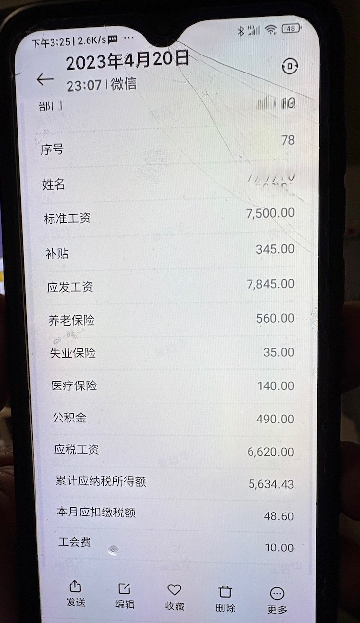 薪資如照片實領月薪約6500 RMB