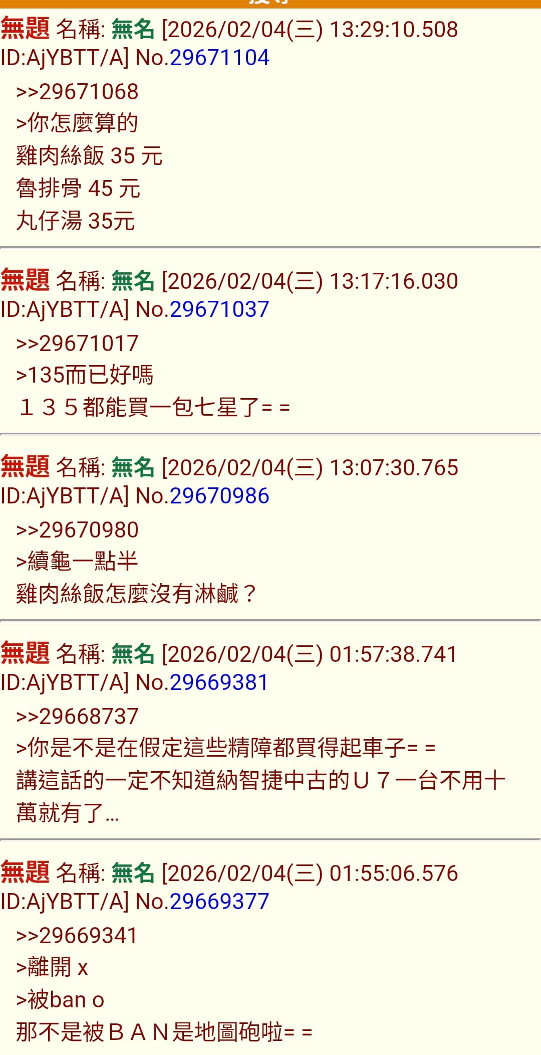 無題 無名 ID:AjYBTT/A 2026/02/04(三) 13:39:16.040 No.29671151 >>29671120>雞肉絲飯 55 元