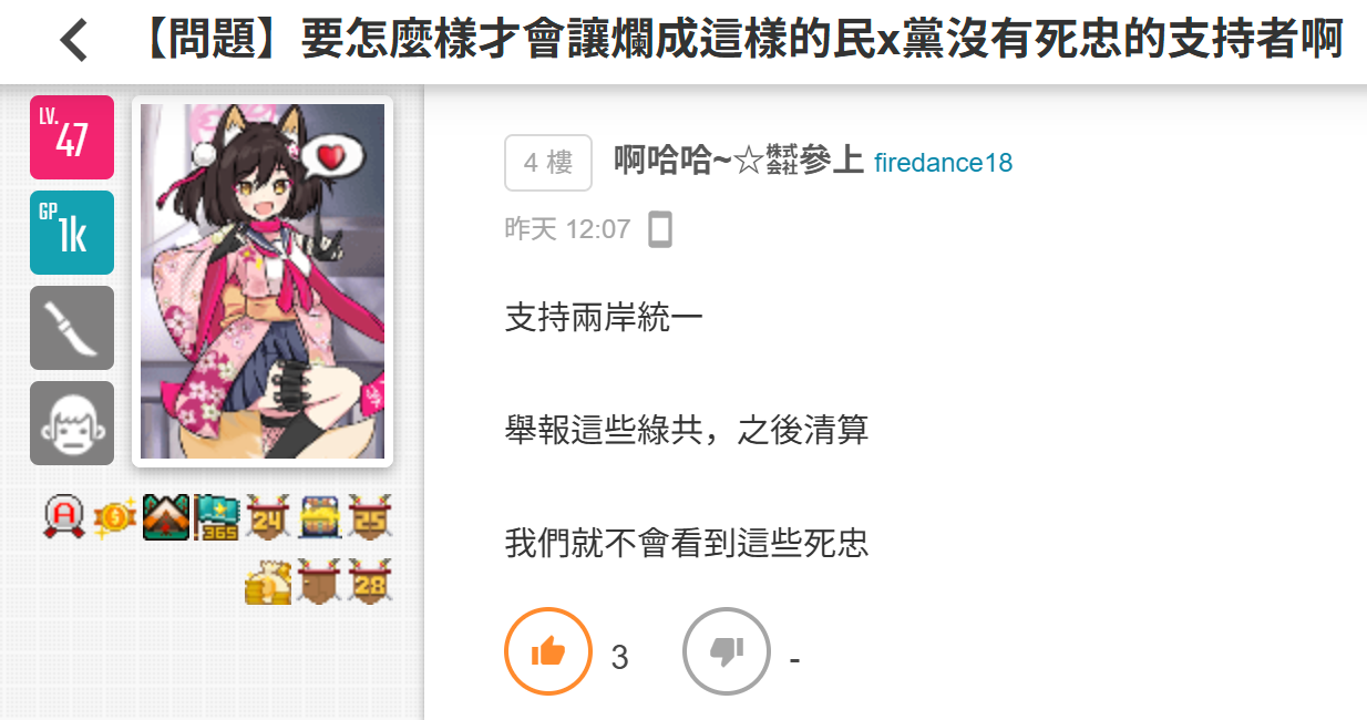 我就看過好幾個"親中+擁藍白"立場的玩家