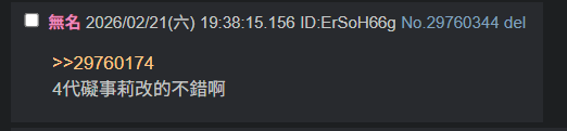 無題 無名 ID:B/ot/N2s 2026/02/21(六) 21:19:37.497 No.29760961