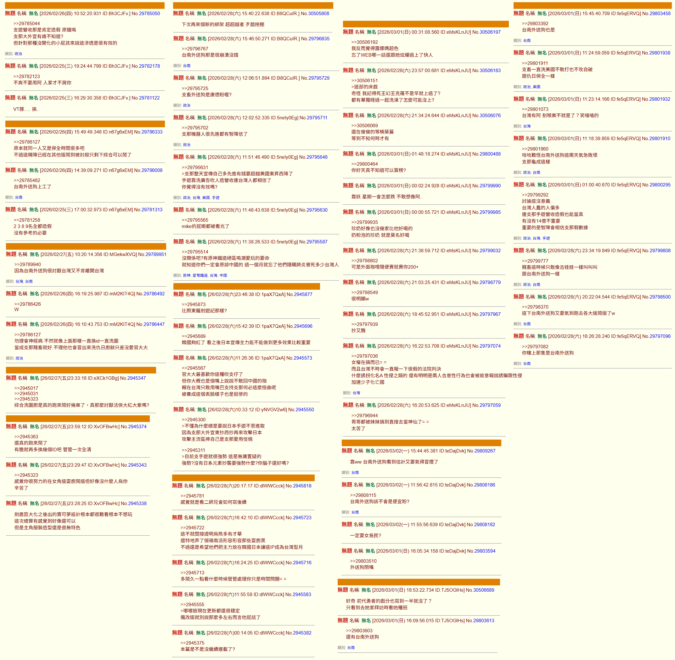 無題 無名 ID:za9F3BHE 2026/03/02(一) 19:20:29.918 No.29810559 >>29810545台南外送狗每天在綜合罵管理員