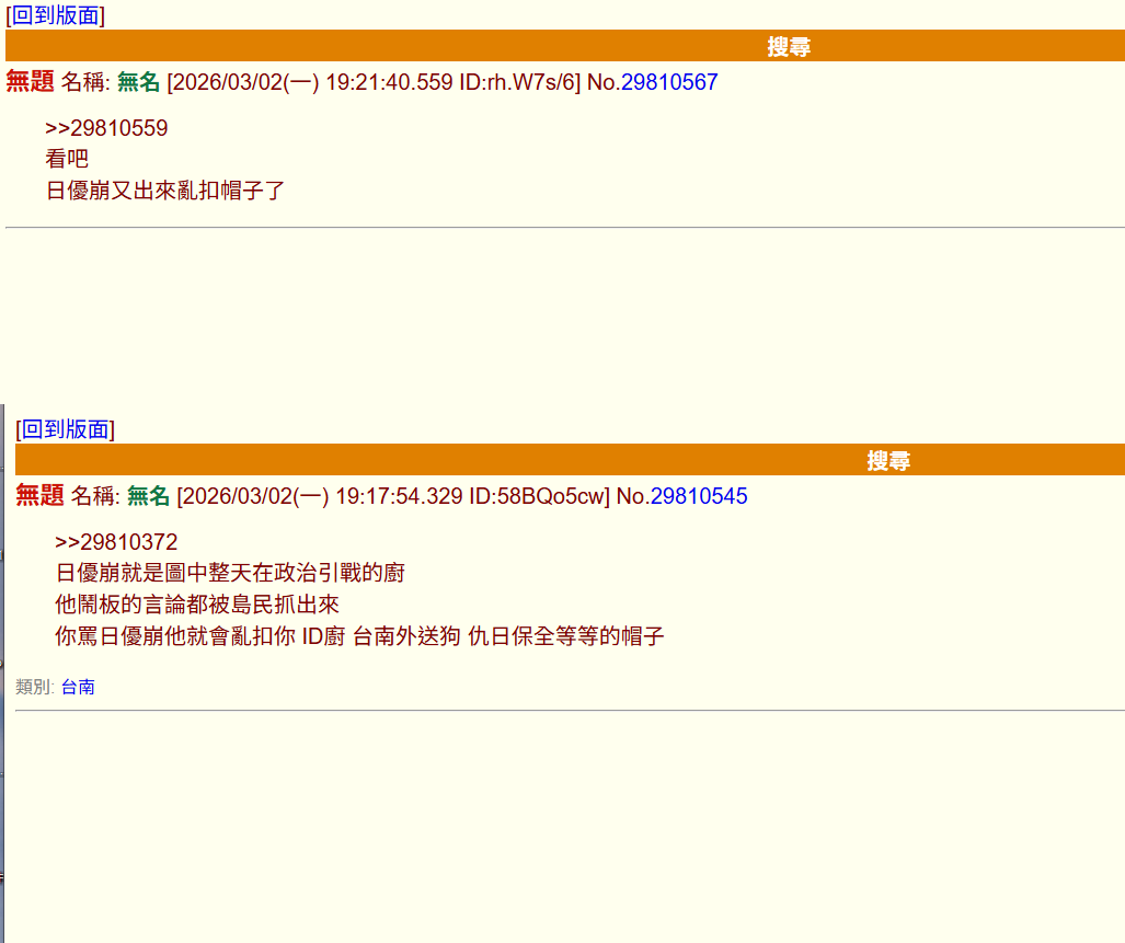 無題 無名 ID:58BQo5cw 2026/03/02(一) 19:17:54.329 No.29810545 >>29810372日優崩就是圖中整天在政治引戰的廚