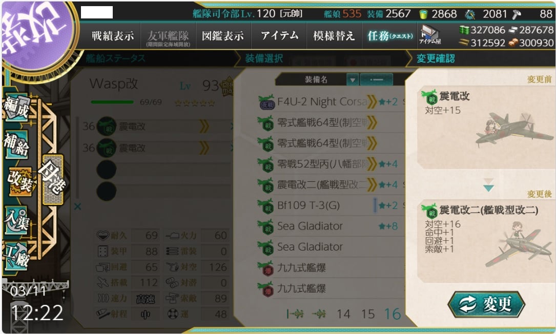 還新增了上位替換機 震電改二(艦戦型改二)
