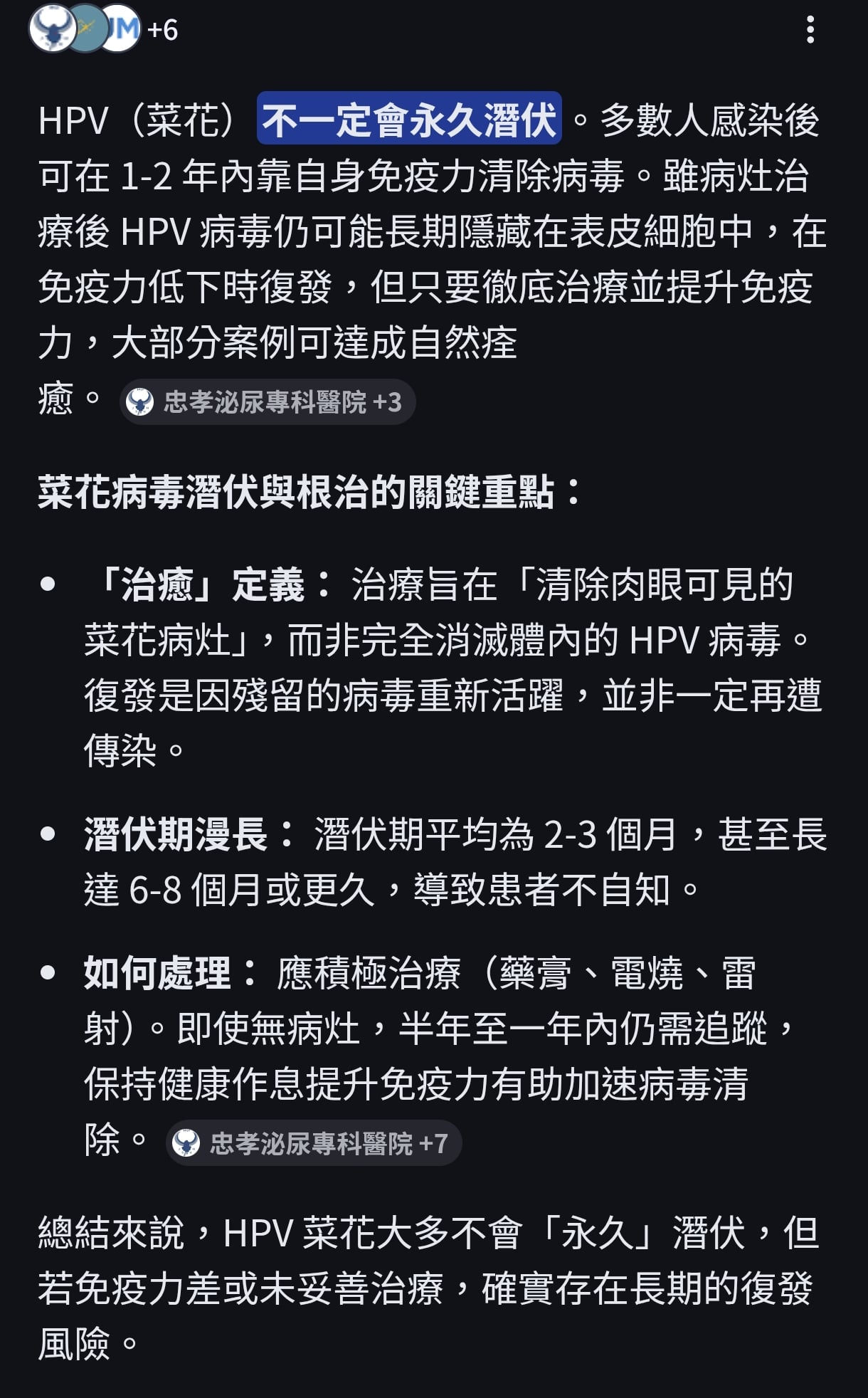 即便菜花病毒可能長期存在,但只要及早接受正確治療並追蹤,是可以被根治的。