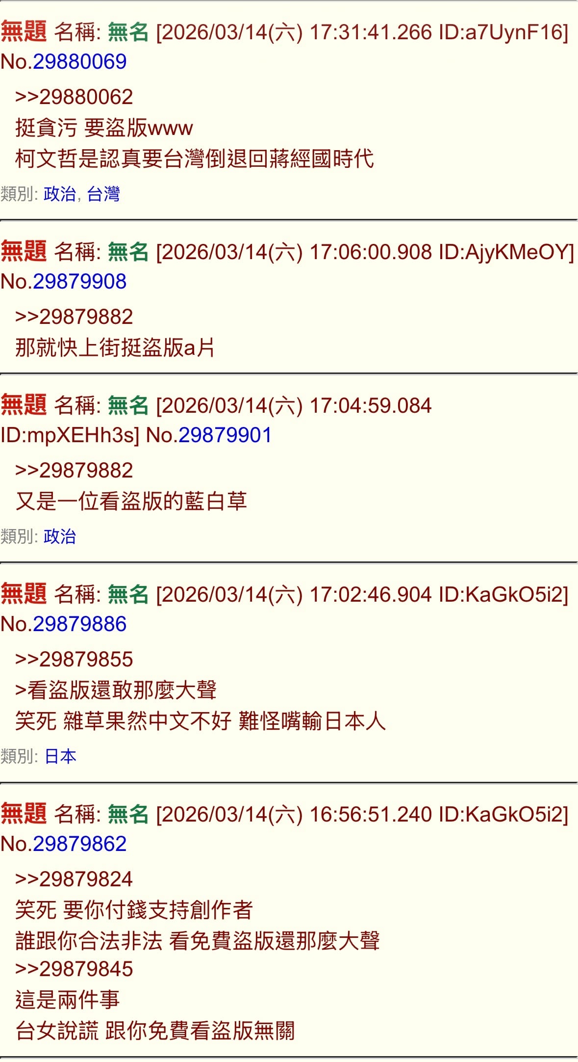無題 無名 ID:xtZQ9IHE 2026/03/15(日) 08:29:39.051 No.29883181 無題 無名 ID:ZLr3gjek 2026/03/15(日) 08:34:01.181 No.29883191 >>29883181藍白反串又不是沒有過
