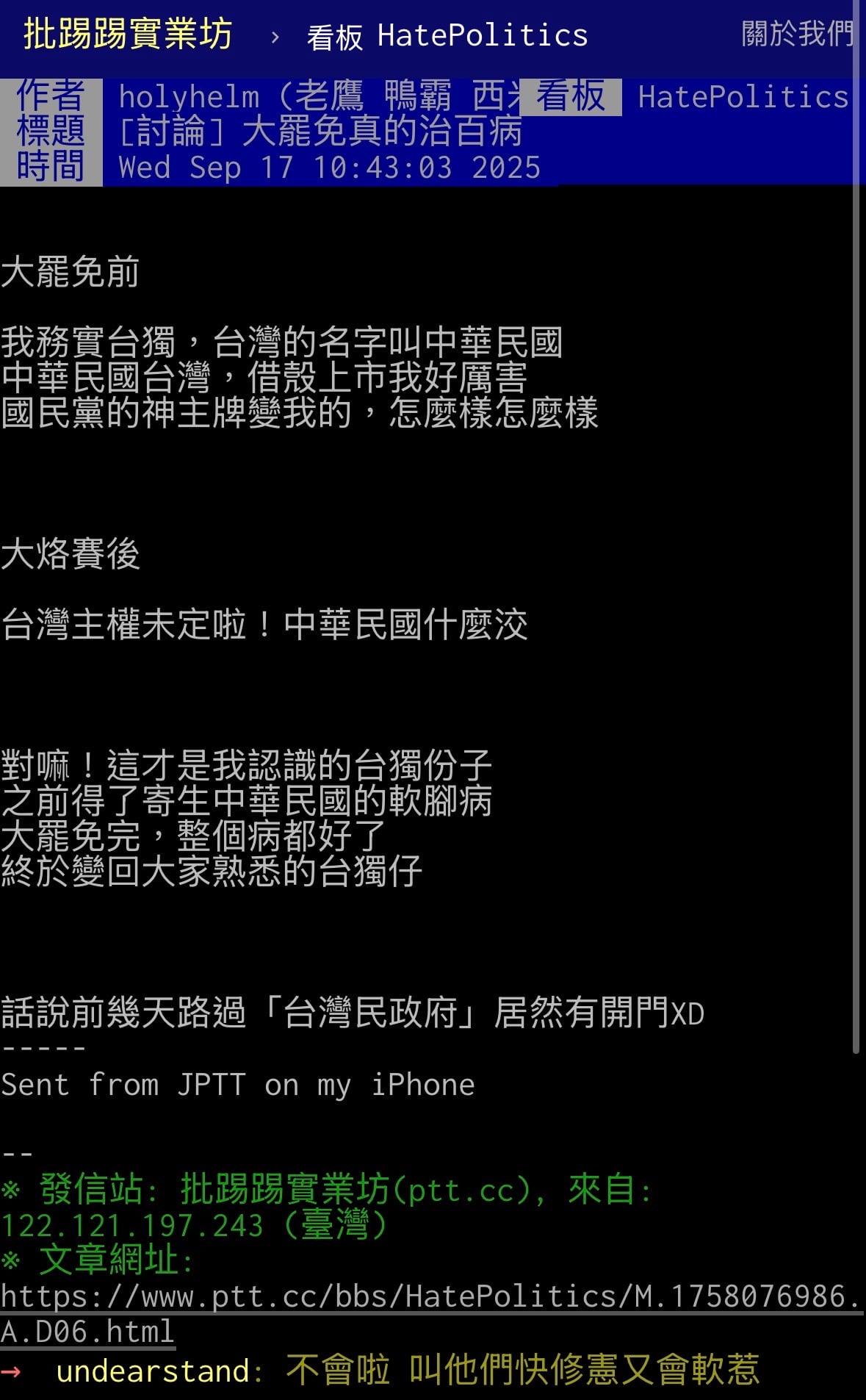 又是一隻 藍白低能在亂洨而已