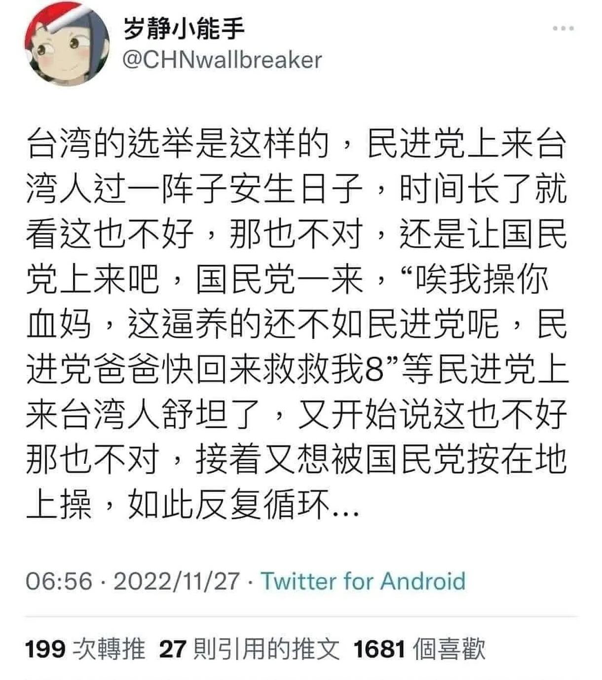 結果他媽的是投給一群舔共的 制你媽B