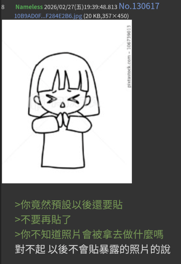 我衷心感謝她們把自己的身體 乳房 乳暈拍上來 並誠意的附上id表示自己也是島民的一份子
