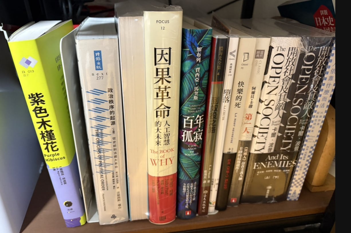 另外我還有不付錢撿別人丟的舊書來看 有看過 考法律的參考書 工程師的課本 統計學的 那些我全都沒撿 只撿小說 兒童知識的書 看見台灣之類的