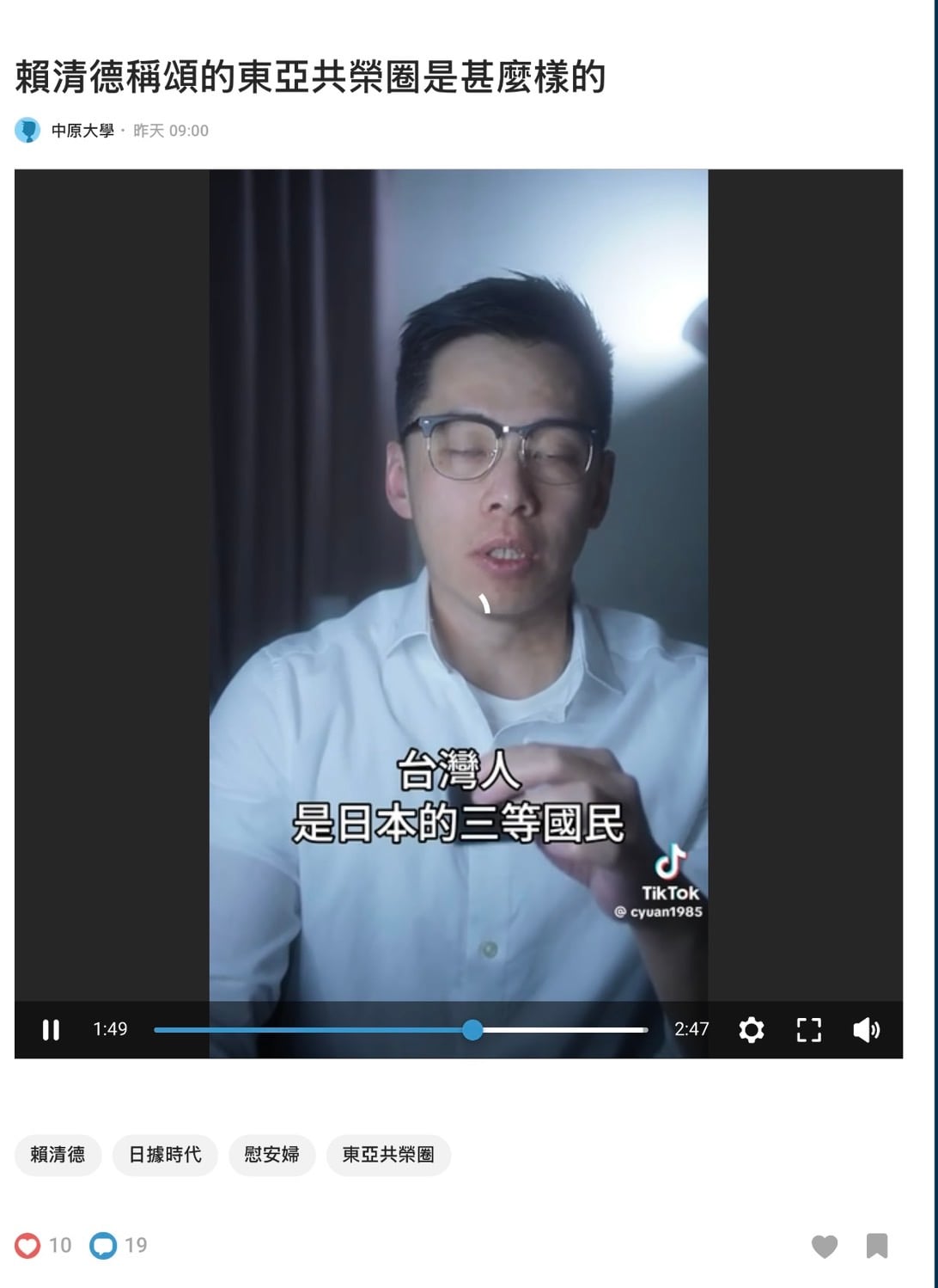 警惕島民 你們好像覺得我是支那