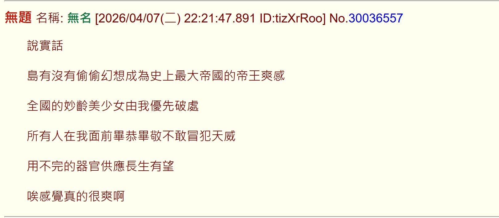 無題 無名 ID:3yqqJ7UM 2026/04/07(二) 23:55:07.930 No.30037128