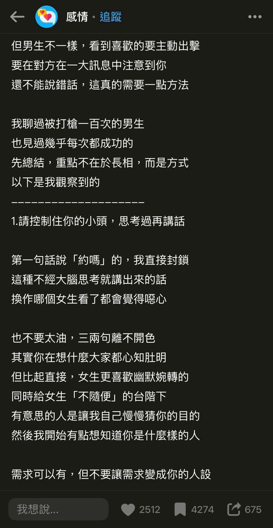 男伴可以花心 更有魅力 但那是在我之前