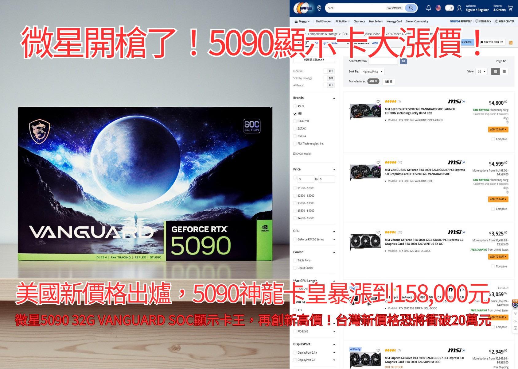 微星 RTX5080 16G GAMING TRIO OC(2715MHz/34cm/三風扇/註冊五年保), $45990