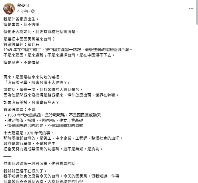 我是外省家庭出生。